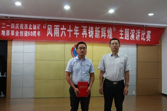 經(jīng)過激烈的角逐和評委的公開打分,行政人事部王輝演講的《讓青春永遠(yuǎn)飛揚(yáng)》,憑借聲情并茂的演繹感動全場,榮獲比賽一等獎。地調(diào)院莊紅紅演講的《追夢尋寶人》、總工辦楊鵬演講的《征程之路-新輝煌》榮獲二等獎;離退辦韓寶明演講的《核地質(zhì)人的奉獻(xiàn)精神》,黨群監(jiān)審部唐苾演講的《最美地質(zhì)勘探隊(duì)員》,李輝演講的《風(fēng)雨六十年 再創(chuàng)新輝煌》榮獲三等獎。公司黨委書記李新平、副總經(jīng)理司金強(qiáng)、紀(jì)委書記工會主席楊乃讓、總工程師王義忠等分別為獲獎選手頒發(fā)榮譽(yù)證書。