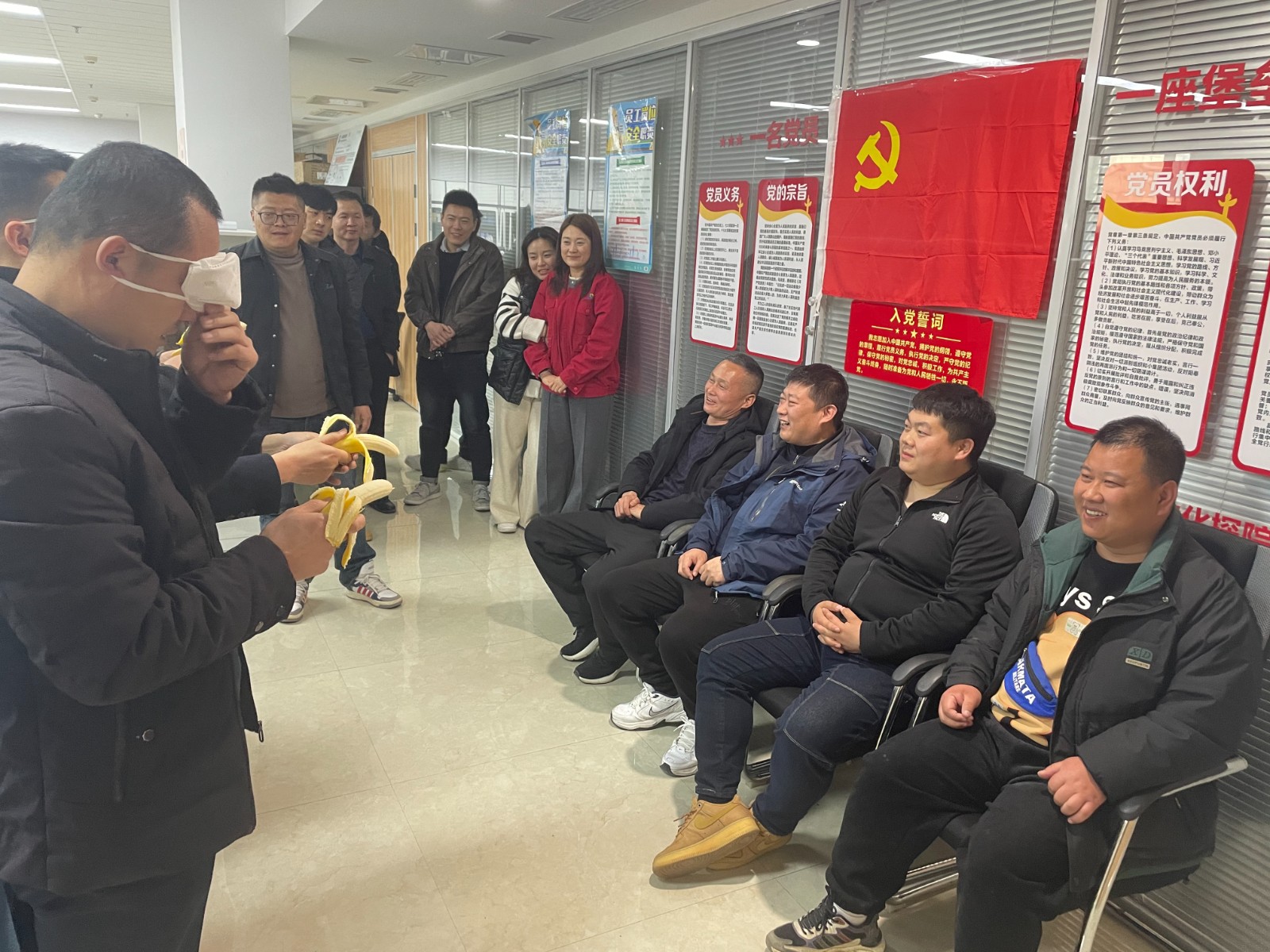 活動現場,“蒙眼喂香蕉” 游戲率先點燃歡樂氣氛。員工們兩兩搭檔,蒙眼者在隊友的語音指揮下摸索前行,試圖將香蕉準確送入對方口中。這一過程中,蒙眼者的每一步都伴隨著同事們的歡聲笑語與熱心提示,既考驗了搭檔間的信任與默契,也拉近了大家彼此的距離。