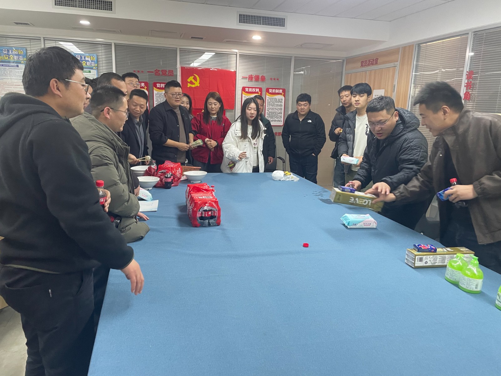 “滾瓶子贏獎品” 環節同樣吸引了眾多員工參與。大家站在指定位置,用力將瓶子滾向目標區域以贏取獎品。參與者們屏氣斂息、調整角度,圍觀同事則加油助威。當有員工成功贏得心儀獎品時,現場爆發出熱烈的歡呼聲,活動的歡樂氛圍再次達到高峰。