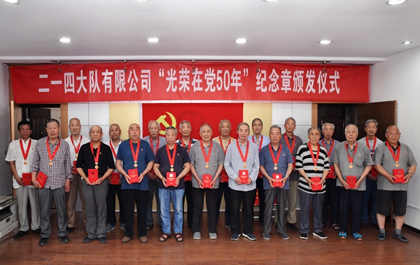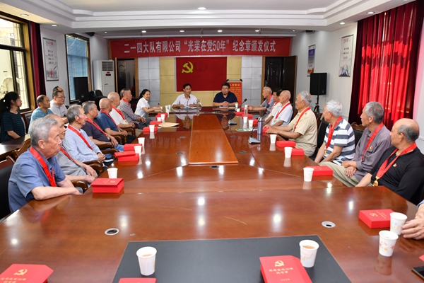 6月23日,中陜核工業集團二一四大隊有限公司舉辦“光榮在黨50年”紀念章頒發儀式。公司黨委書記、董事長鄧盛波、副總經理楊波和光榮在黨50年的老同志代表參加了頒發儀式。
