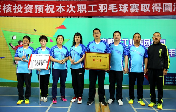 4月12 -13日,中陜核工業集團公司在航天大道神舟四路碳原子運動工廠舉辦了2018年“陜核投資杯”職工羽毛球比賽。來自集團公司機關及下屬企業18個代表隊、150余人參加了比賽。公司代表隊在此次比賽中榮獲混合團體第二名、女單第三名、女雙第三名的好成績。