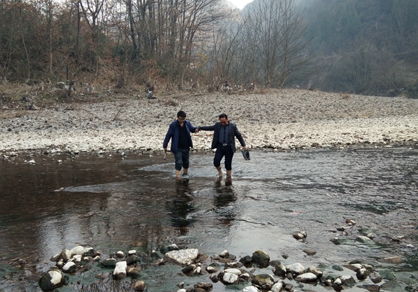 公司王義忠一行到達(dá)項(xiàng)目部駐地后,首先聽取了水工環(huán)院副院長余鋼對(duì)項(xiàng)目工作情況介紹,該項(xiàng)為水工環(huán)調(diào)查院承擔(dān)了胡家壩鎮(zhèn)政府委的地?zé)嵴{(diào)查市場(chǎng)項(xiàng)目,2017年12月份主要開展了野外地質(zhì)路線調(diào)查、泉水調(diào)查工作。隨后,深入現(xiàn)場(chǎng)對(duì)楊家河壩熱水潭異常點(diǎn)及周圍巖性構(gòu)造,高家山地形、水文、地貌特征進(jìn)行實(shí)地查看。在去黃家灣地?zé)岙惓|c(diǎn)實(shí)地查看過程中,發(fā)現(xiàn)河對(duì)面有明顯的地?zé)崴惓,F(xiàn)象,由于高速公路阻隔,沒有便捷到達(dá)河對(duì)面的便道,為了不放過任何一個(gè)異常點(diǎn),王義忠不顧冬季冰冷的河水,依然帶領(lǐng)大家脫下鞋襪涉水過河,到達(dá)河對(duì)面的地?zé)崴惓|c(diǎn),測(cè)量水溫,查看并測(cè)量構(gòu)造走向展布方向。