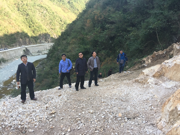 在陜西省寧強縣中壩寨子灣-王家灣地區金銀多金屬礦預查項目,茍潤祥院長一行對照圖件對MnⅡ號礦化帶的基本情況進行了解,實地詳細的觀察,與項目技術人員就礦體的類型及特征進行了探討交流,就區內錳、金礦找礦下步工作思路提出了建議。