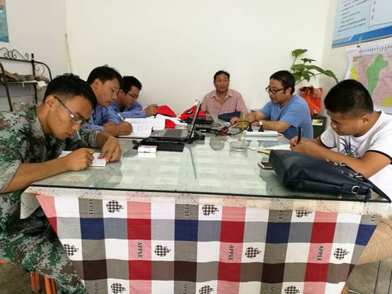 回到項目部后,組織召開了項目技術會,總工辦主任涂宏對項目化探記錄相關表格、探槽素描圖、野外地質記錄本等各類原始資料進行了詳細檢查。要求項目組人員要按照省基金辦的規范標準對項目實施過程中原始資料進行綜合整理。