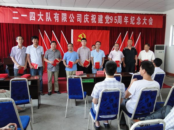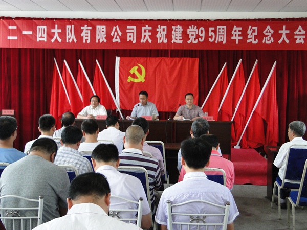 2016年6月29日上午,二一四大隊有限公司隆重召開慶祝建黨95周年暨先進黨支部、優秀共產黨員表彰大會。公司領導、中層干部、全體黨員及入黨積極分子共70余人參加了會議。會議由黨委委員、副總經理司金強同志主持。